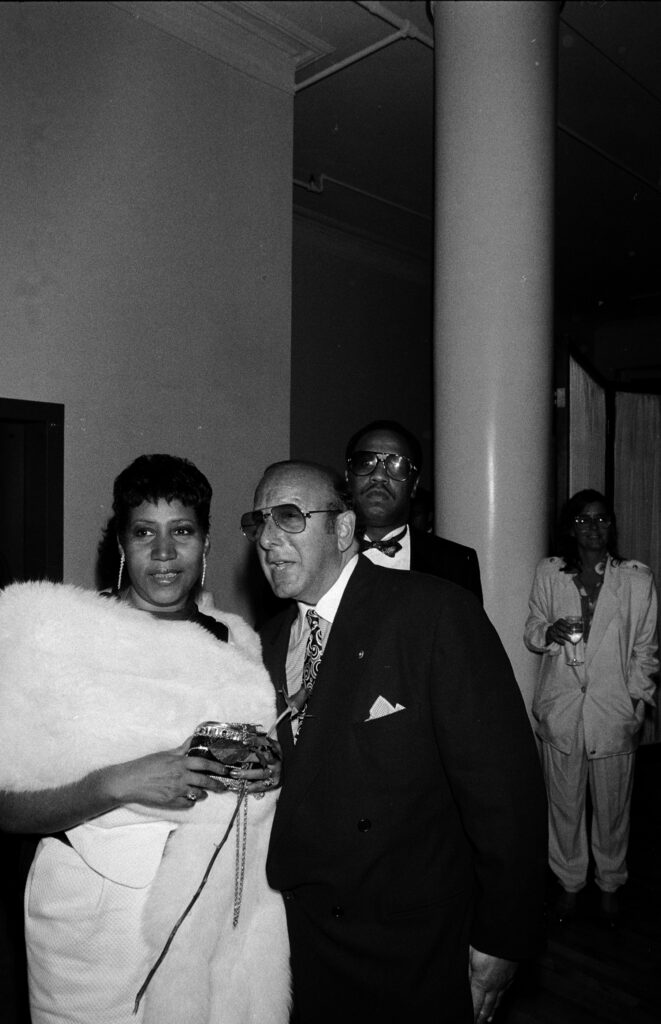 Singer Aretha Franklin and record executive Clive Davis at a party in New York, 1989.