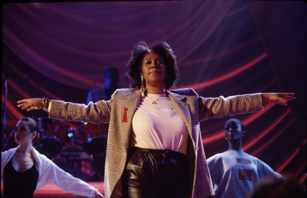Aretha Franklin performing at a 1993 AIDS benefit concert.