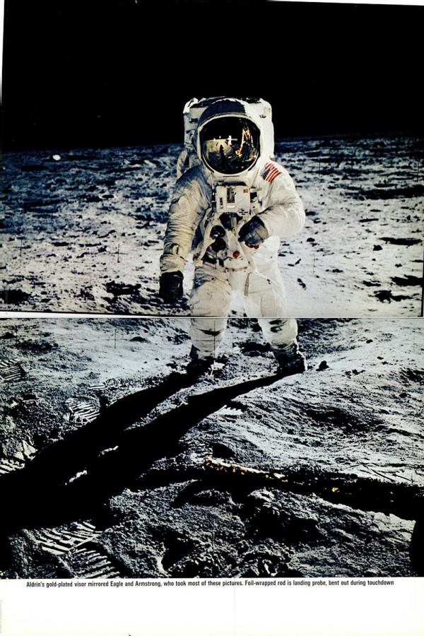 LIFE magazine Special Edition, August 11, 1969. “Aldrin’s gold visor mirrored Eagle and Armstrong, who took most of these pictures.”
