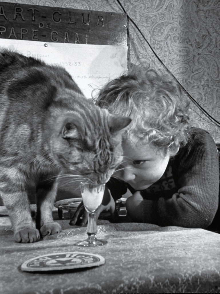 This boy, a Dutch billiards prodigy, fed cream to his cat in 1953.