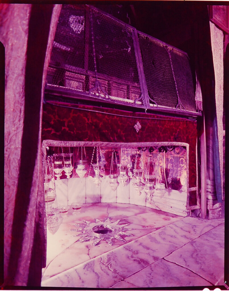 In the Grotto of the Nativity, the sacred site of Christ’s birth was marked by a silver star on the floor, with a hole in the middle for pilgrims to peer through, 1955.