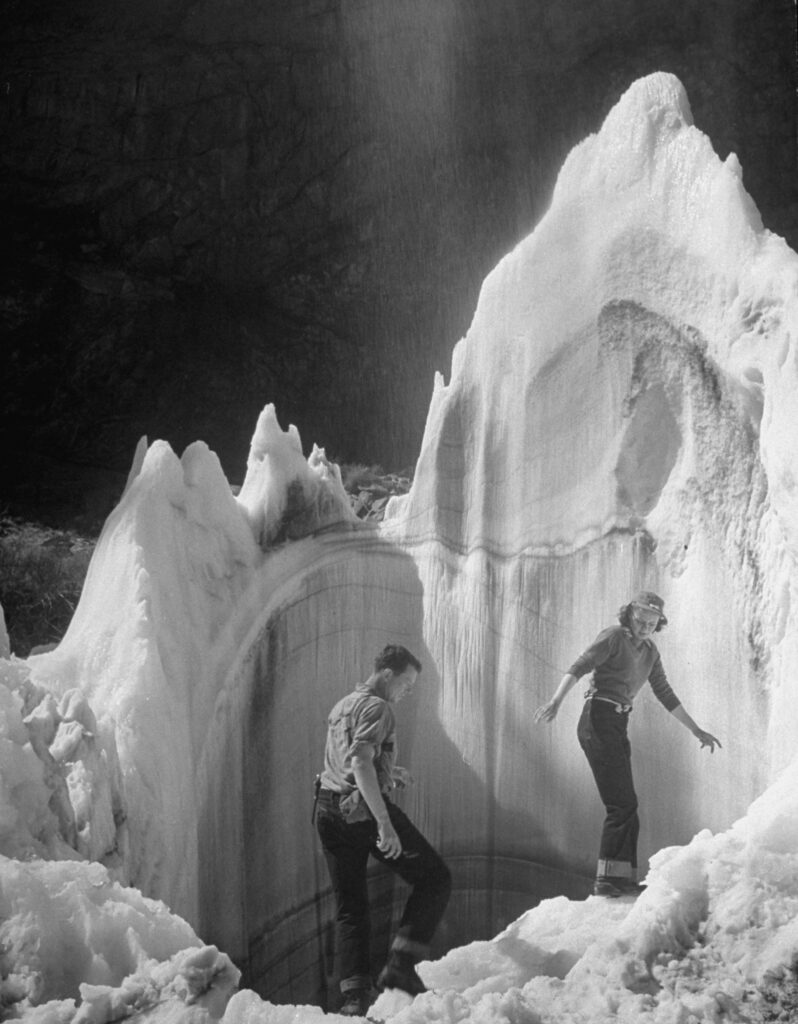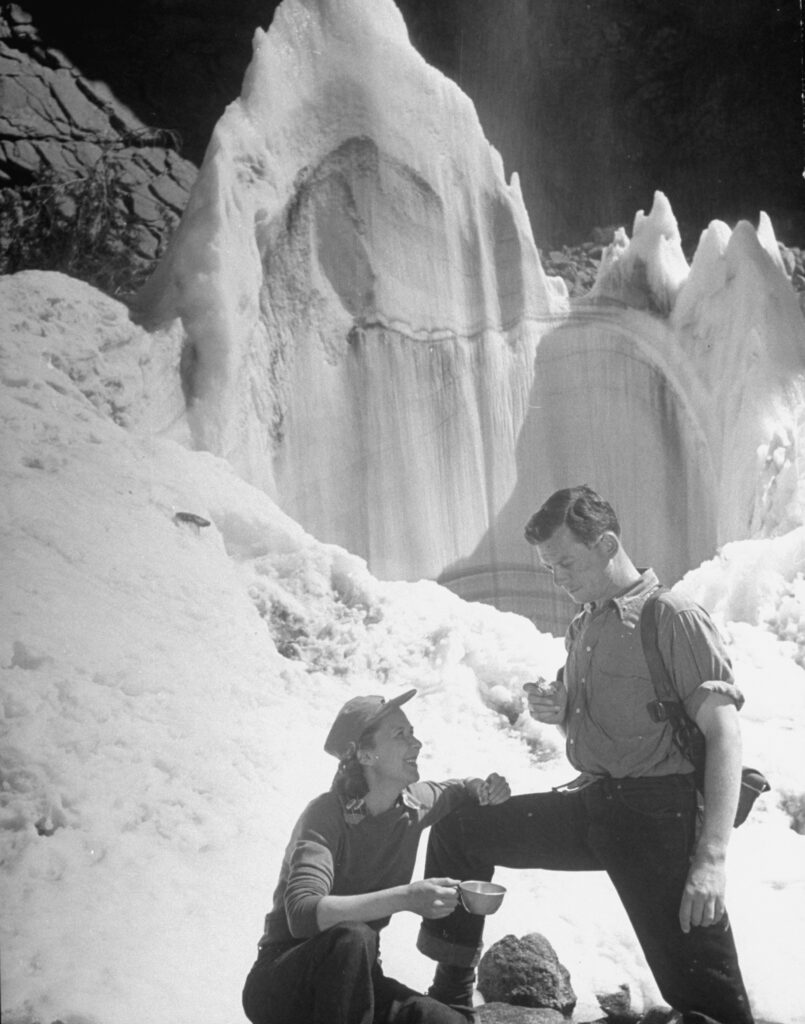 Helen and Peter Brooks explored an ice cone in Impassable Gorge during their nine-day trek down the Salmon River, 1949.