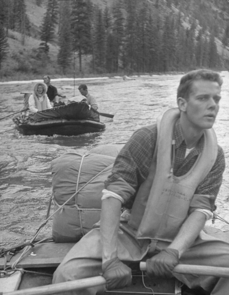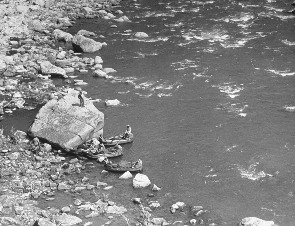 Adventurers rode the rapids on the Middle Fork of the Salmon River in Idaho, 1949.