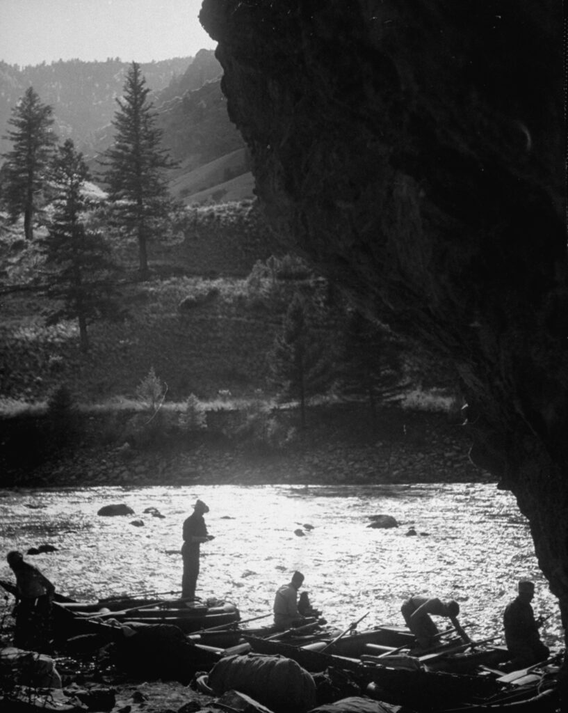 But in 1949 some river guides had mastered the Middle Fork to the point that they began leading expeditions, and LIFE photographer Loomis Dean rode with one group. The trek down river took nine days, with people often camping near winter snow that had yet to melt. Some nights the temperatures dipped to 25 degrees. During those nine days the trekkers also caught—and ate—an estimated 200 pounds of trout. (If you are wondering, you can also catch salmon in the Salmon River) .