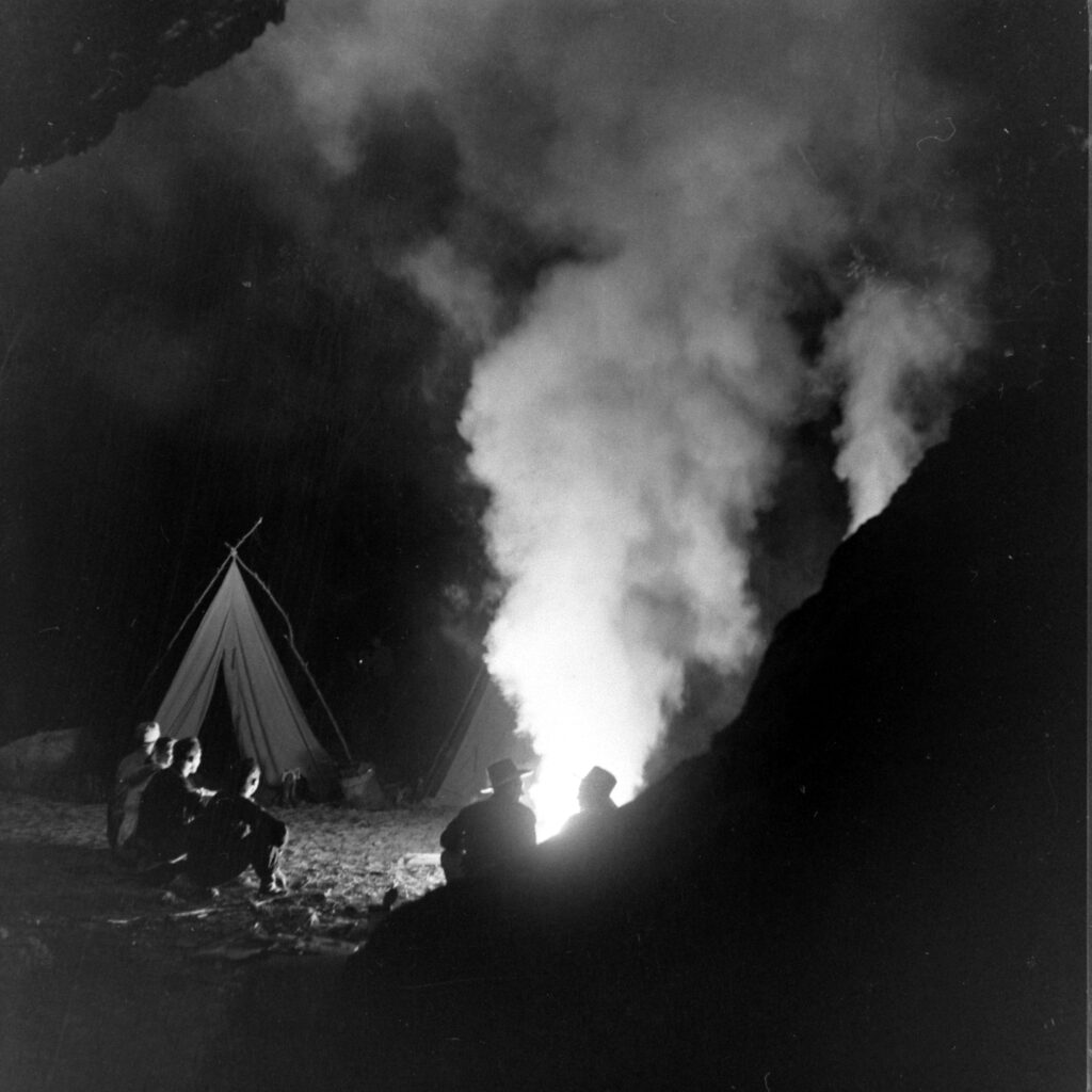 The adventurers set up camp during a nine-day trek down the Salmon River in Idaho, 1949.