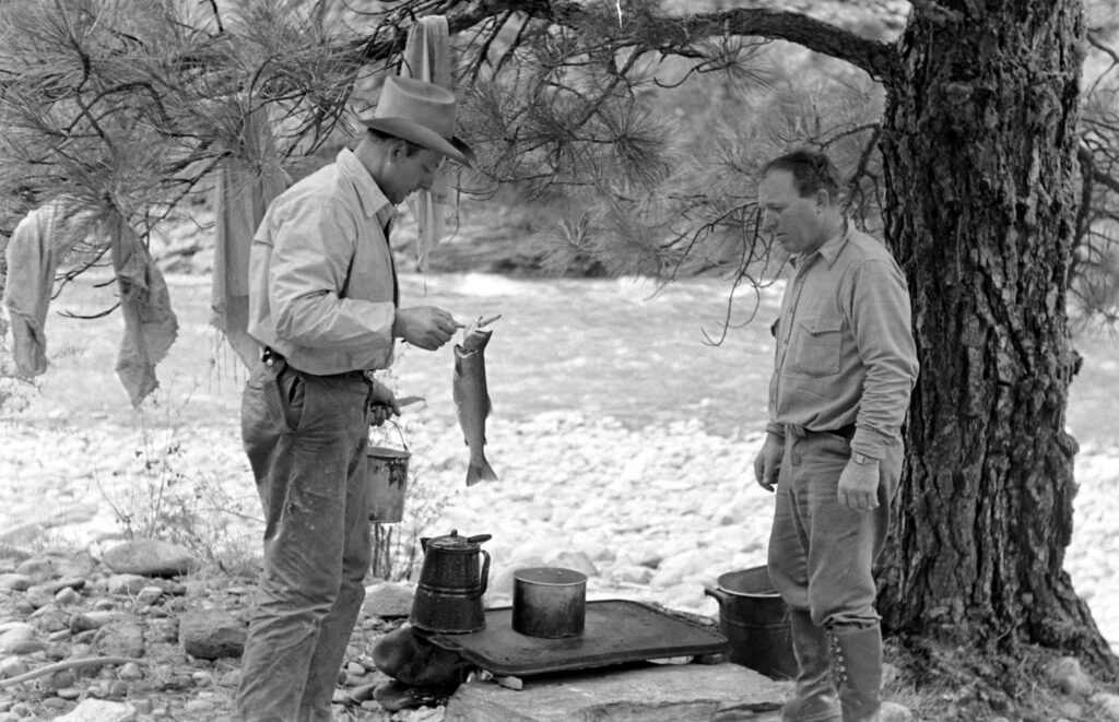 The trekkers caught and dined on trout during their expedition down the Salmon River, Idaho, 1949.
